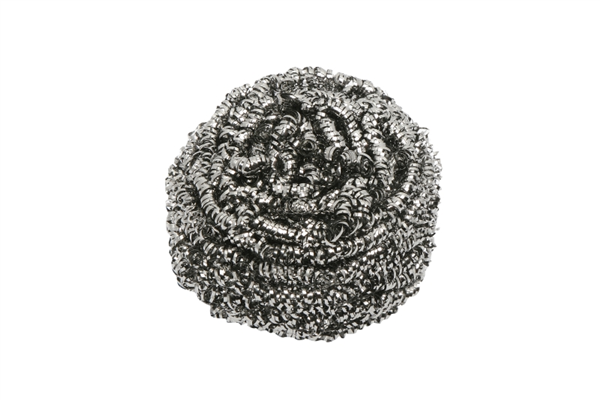 Super-abrasive stainless steel construction removes tough, baked-on grime and steel-pan residue with ease