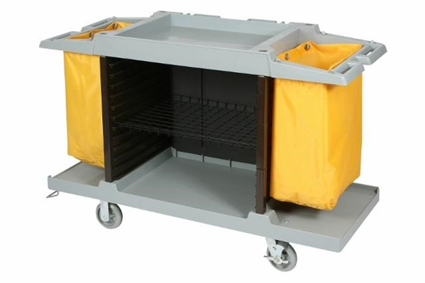 is a hotel-grade service trolley made for linen collection, guest room servicing and multi-use utility rounds