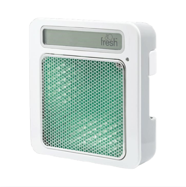 Modern, compact passive air freshener dispenser designed exclusively for use with Our Fresh fragrance refills