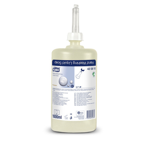 Tork Liquid Soap Hand Washing 1L 420810 is a gentle yet effective hand wash designed for frequent use in commercial and public washrooms
