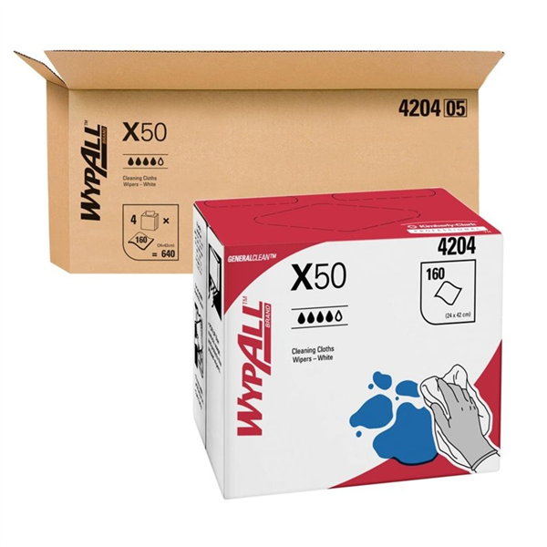 Each sheet measures approximately 24cm×42cm and the pack configuration is 160 wipers per box × 4 boxes per case (640 wipers in total)