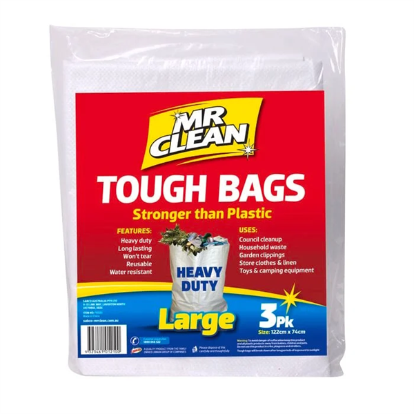 Large heavy duty reusable cleaning bags in a convenient 3 pack