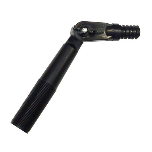 Features a standard female threaded end compatible with most extension poles, and a swivel joint allowing angle adjustment up to approximately 270° or set in 13 locked positions