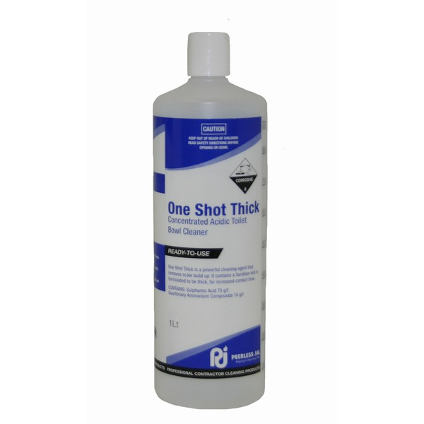 Designed for refilling with One Shot Thick acidic cleaner for use in washrooms, toilet bowls, urinals, porcelain and enamel surfaces requiring heavy scale or mineral deposit removal