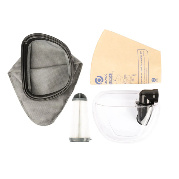 This service kit includes: Clear offset lid (LID005), Disposable paper dust bag 2.5L 10pk (DUB034) Reusable SMS bucket dust bag 2.5L (DUB032) Pre-motor cone filter (FIL027) Uniquely designed offset inlet and clear dome lid create a cyclonic effect to help lift the dust from the bottom of the dust bag to maintain maximum airflow
