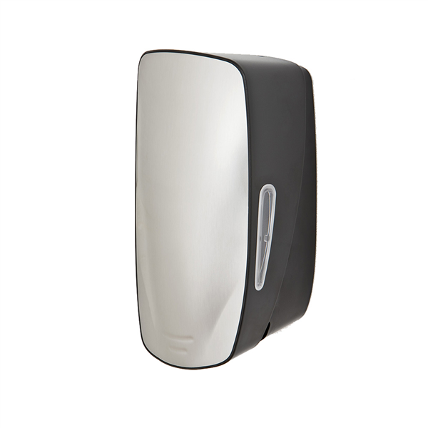 Liquid soap dispenser with stainless steel front.