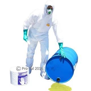 FEATURES AND BENEFITS • Breathable Microporous Fabric • Stitched Seams for extra strength • Breathable and Water Resistant • Provides protections against Airborne Particulate Matter (Type 5) and Barrier to Limited Splash and Liquid Spray (Type 5) • Excellent Abrasion and Tear Resistance • Lint Free outer surface • Antistatically treated and comply to the electrostatic protection required by EN1149-5:2008 on inner face only • Non woven inner for comfort • Reinforced gusset / crotch • Fully elastic hood, waist, ankes and wrists • Self adhesive zip flap with two way zip * The user should evaluate the suitability of this product for their application