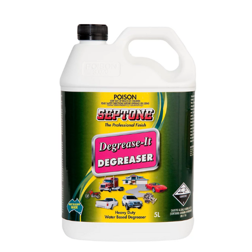 Septone Degrease IT is a concentrated, water-based heavy-duty degreaser formulated to cut through grease, oil, grime and dirt on machinery, engines, concrete floors and other heavily soiled surfaces