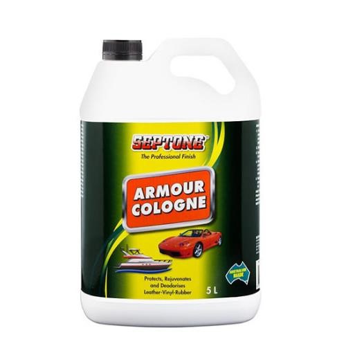 Septone Armour Cologne Rejuvenator is a water-based surface rejuvenator formulated to clean, restore and protect interior and exterior vinyl, leather, rubber, plastics and acrylic surfaces