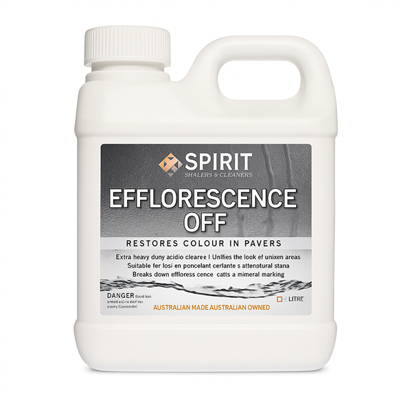 Spirit Efflorescence Off is a professional-grade acidic cleaner formulated to remove efflorescence and mineral deposits from hard surfaces