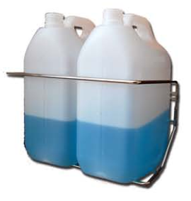 Vertical storage of two 5L chemical, cleaning, sanitising or food-service liquids